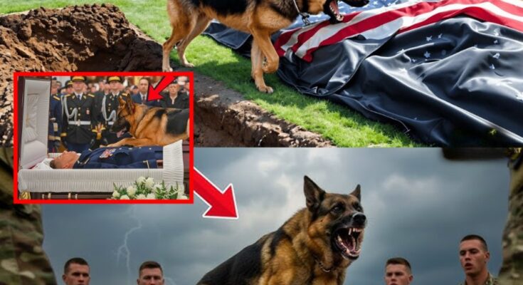 The German Shepherd K9 stood at the entrance of the chapel, his leash held firmly by the officer who had brought him. His chest rose and fell rapidly as though he sensed something was terribly wrong but couldn’t understand why. He sniffed the air, scanning the room, searching for a sign, an answer.