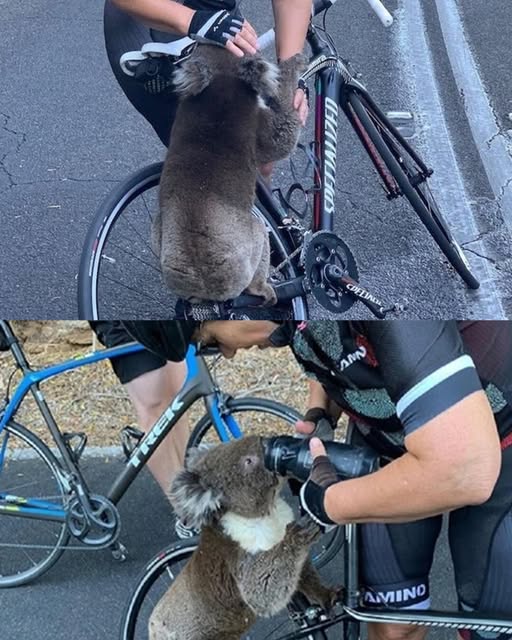 Instead of retreating into the trees, the koala walked directly toward her. Before she could react, he clambered up onto her bicycle, paws gripping the frame as if he had been waiting for her all along.