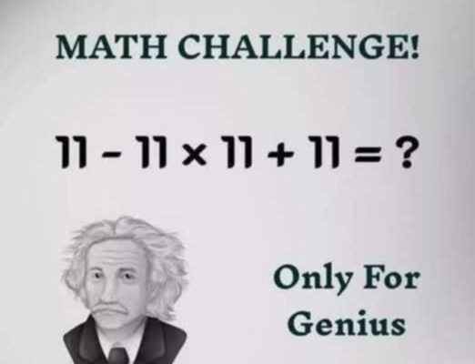 The problem is: What is the result of 11 – 11 × 11 + 11?
