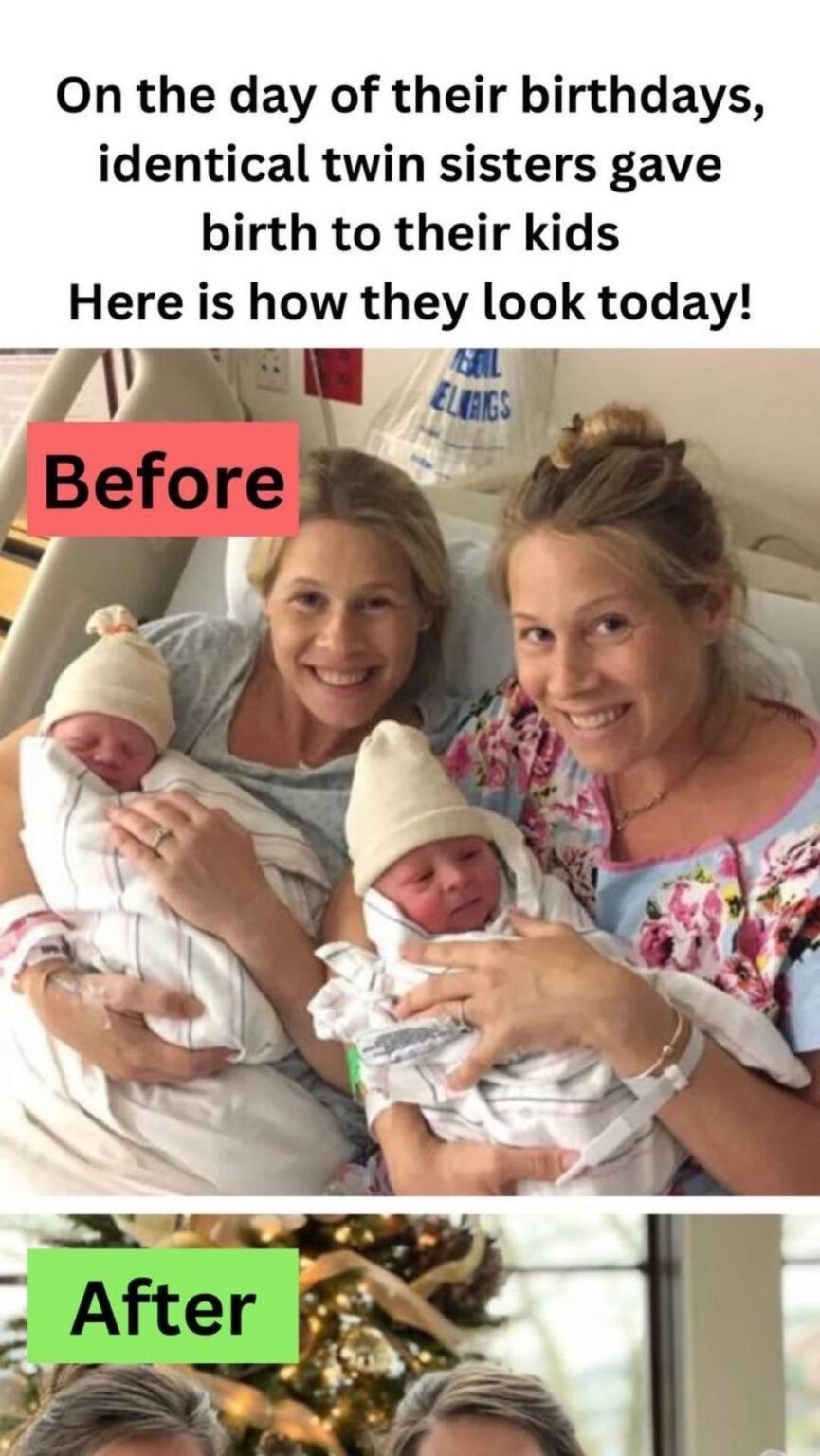 Although they weren’t in the same room, the sisters nevertheless got together to celebrate their 33rd birthdays in the adjoining maternity wards.