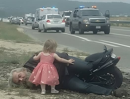 Being so tiny, the sight of a little girl in a princess dress crouched beside an unconscious biker off Highway 84 stunned both medics and passing drivers. Her small hands pressed against the wound in his chest while she softly sang “Twinkle, Twinkle, Little Star” to keep him calm.