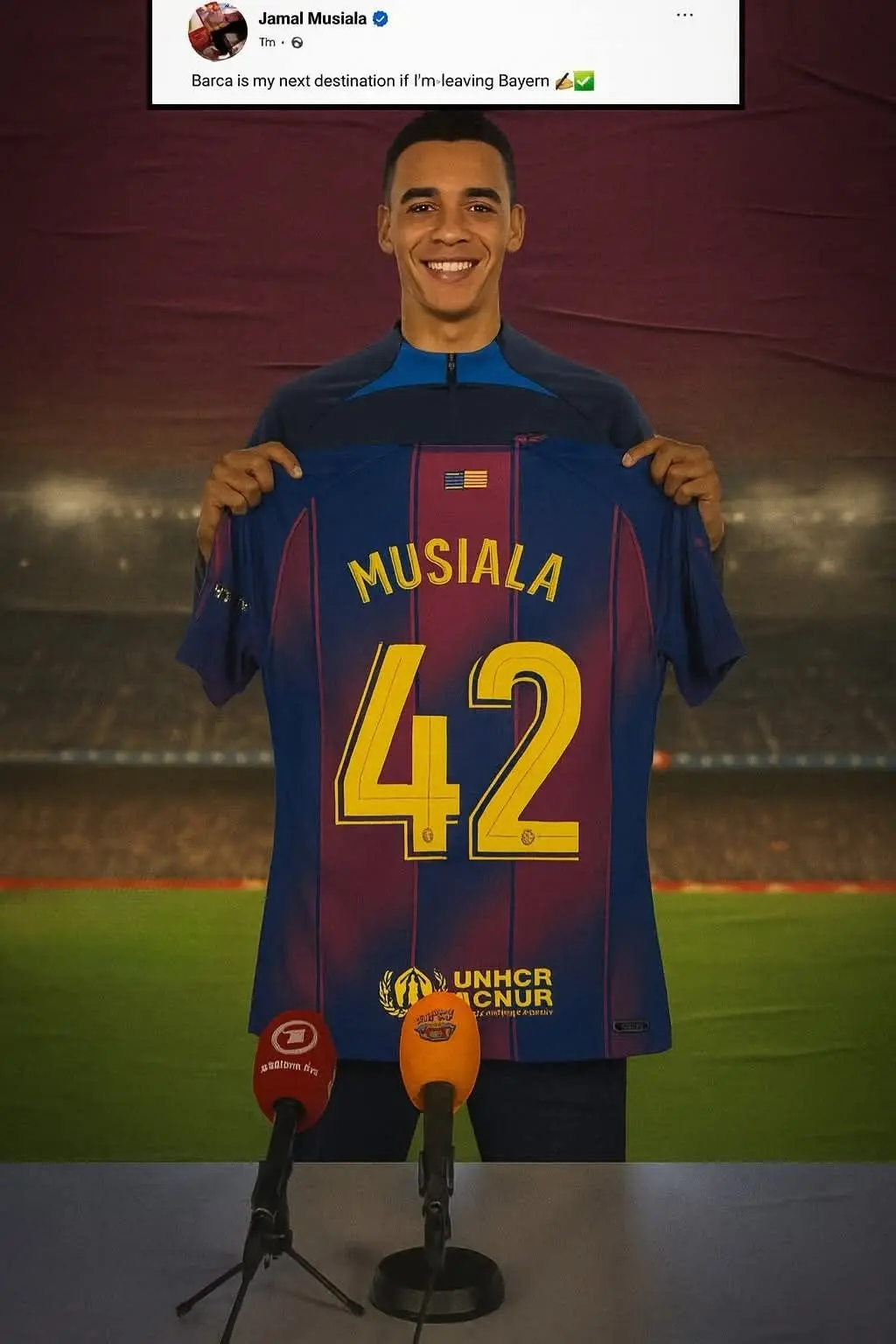 Dans les coulisses du football européen, certains dossiers semblent anodins… jusqu’au jour où une fuite fait trembler tout un continent. C’est exactement ce qui s’est produit hier soir, lorsque plusieurs journalistes catalans ont affirmé avoir vu Jamal Musiala entrer par une porte latérale du complexe Joan Gamper. Officiellement, le jeune prodige allemand se trouvait encore à Munich pour un “entraînement individuel” après la défaite de Bayern, mais une source interne du Barça soutient que Musiala aurait passé plus de deux heures dans une salle de réunion insonorisée, en compagnie de Deco et du conseiller sportif privé de Laporta.