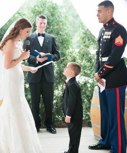 It was a proud moment in the life of Gage Newville; standing by his father’s side as the latter exchanged vows with his wife-to-be, Senior Airman Emily Leehan.