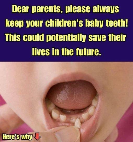 According to scientists, baby teeth have stem cells that help regenerate various parts of the body, so one day, these tiny teeth could save lives.