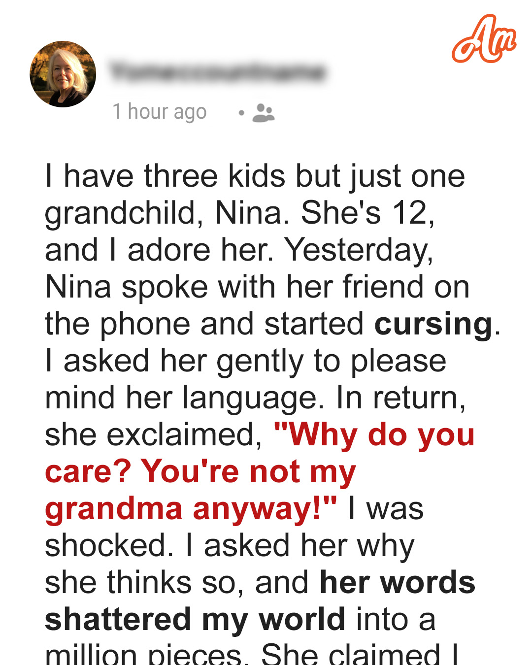 I thought my granddaughter, Nina, and I shared an unbreakable bond — until she looked me in the eyes and said, “You’re not my grandma anyway.” In that moment, everything changed. As I searched for answers, I discovered a hidden prejudice within our family that left me questioning everything.