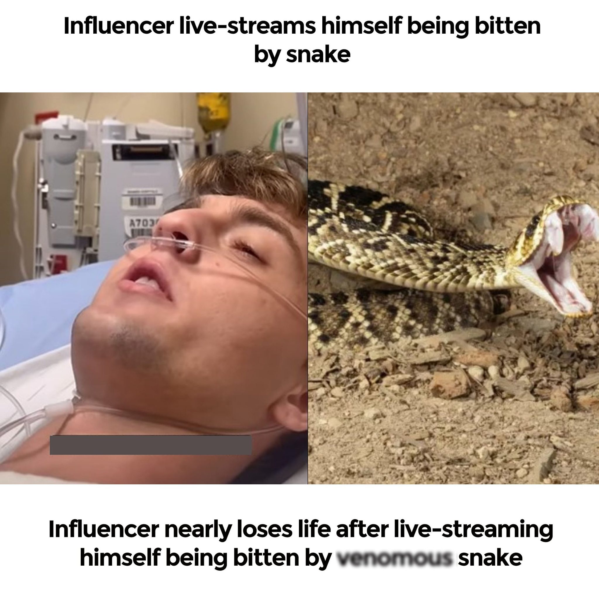 Recently, social media influencer David Humplett live-streamed himself being bitten by a venomous snake.